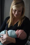 San Francisco based photographer, Amanda Anderson, photographs mother holding newborn baby boy in their home in the Marina neighborhood of the city.